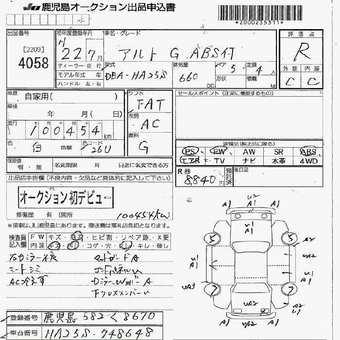SUZUKI ALTO G - лот 4058