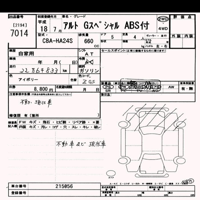 SUZUKI ALTO G SPECIAL ABS EXIST - лот 7014