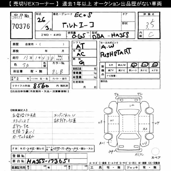 SUZUKI ALTO EKO S - лот 70376