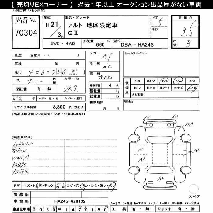 SUZUKI ALTO G2 AREA LIMITATION CAR - лот 70304