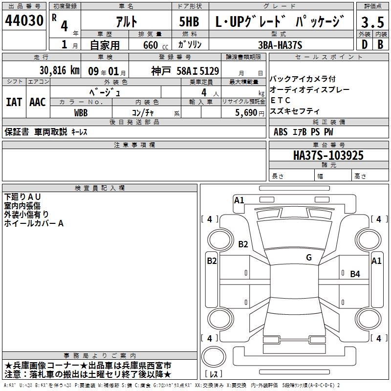 SUZUKI ALTO L*UP GRADE PACKAGE - лот 44030