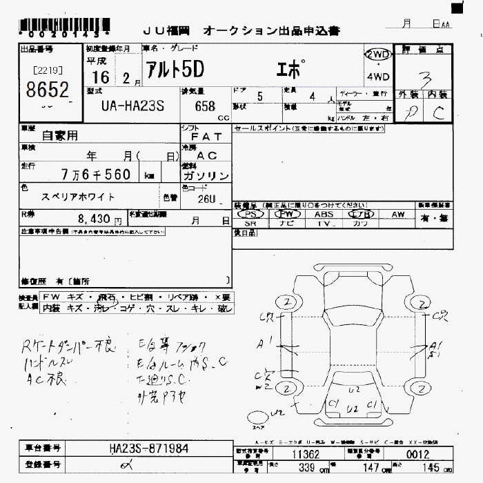SUZUKI ALTO EPO - лот 8652