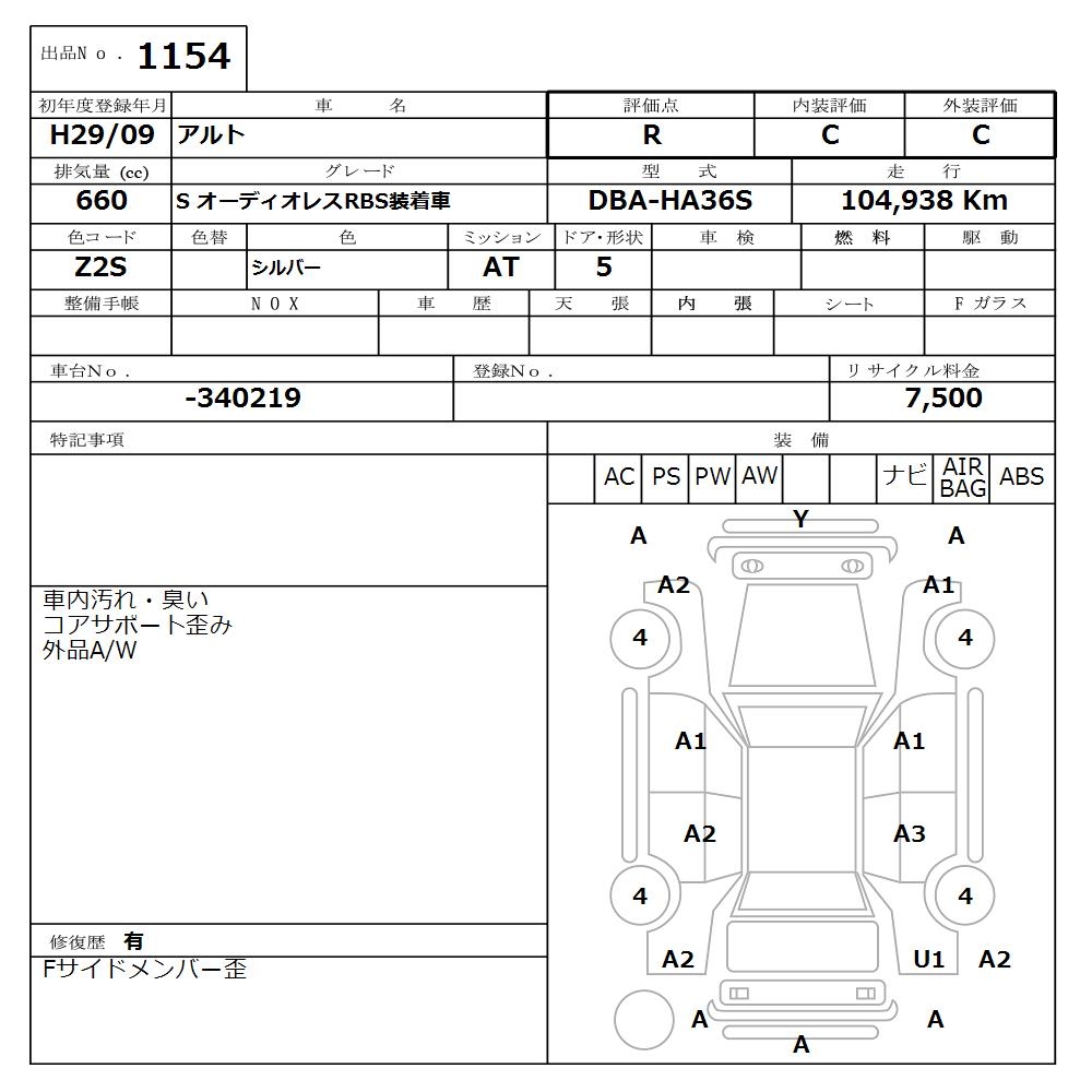 SUZUKI ALTO S WITHOUT AUDIO RBS EQUIPPED CAR - лот 1154
