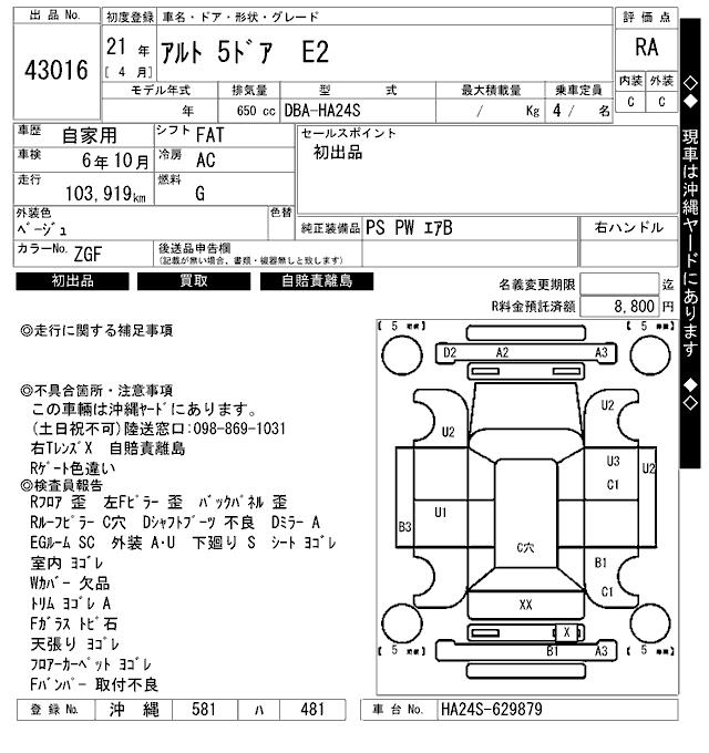Статистика продаж SUZUKI ALTO с аукционов Японии