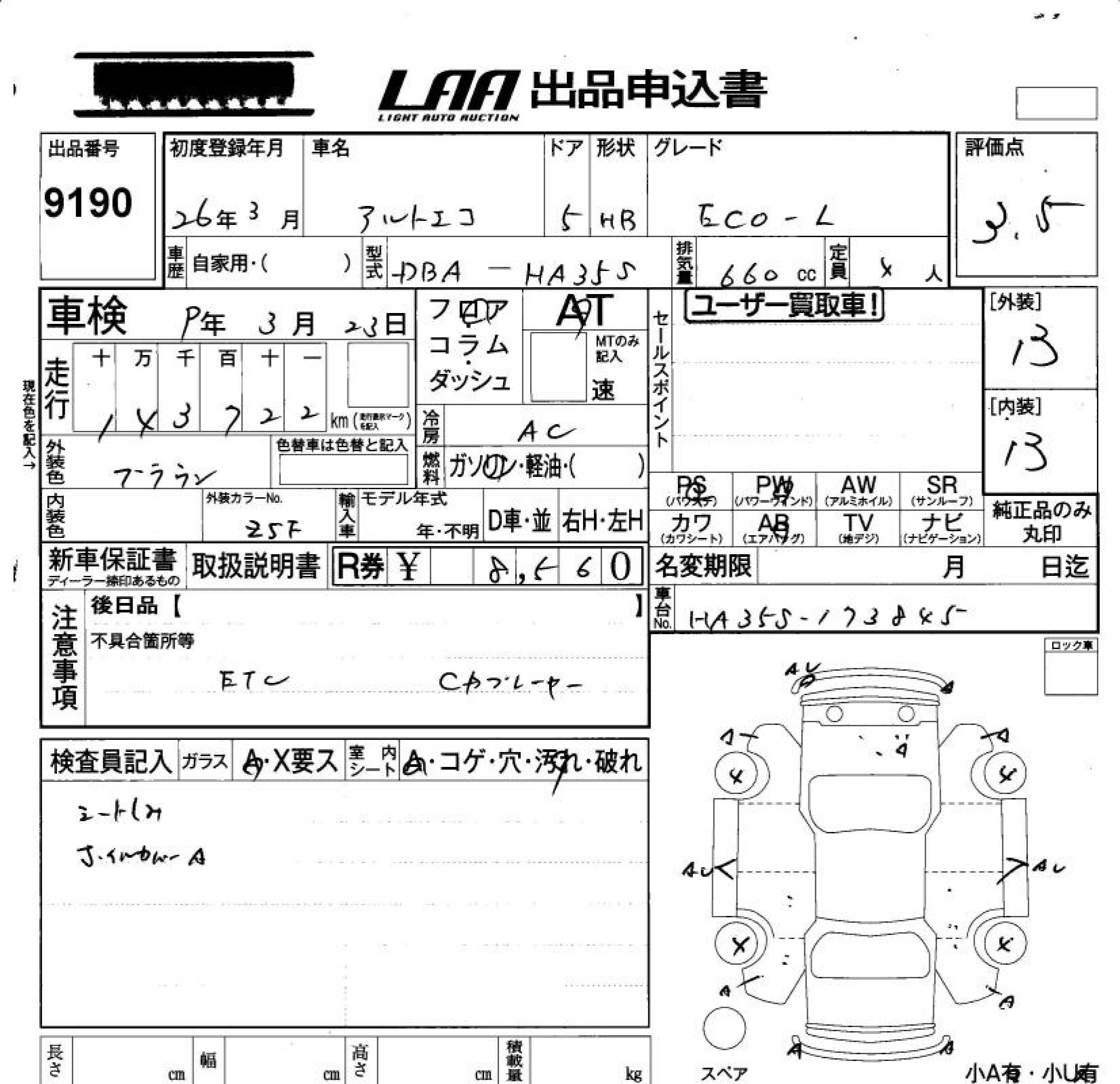 SUZUKI ALTO ECO - лот 9190