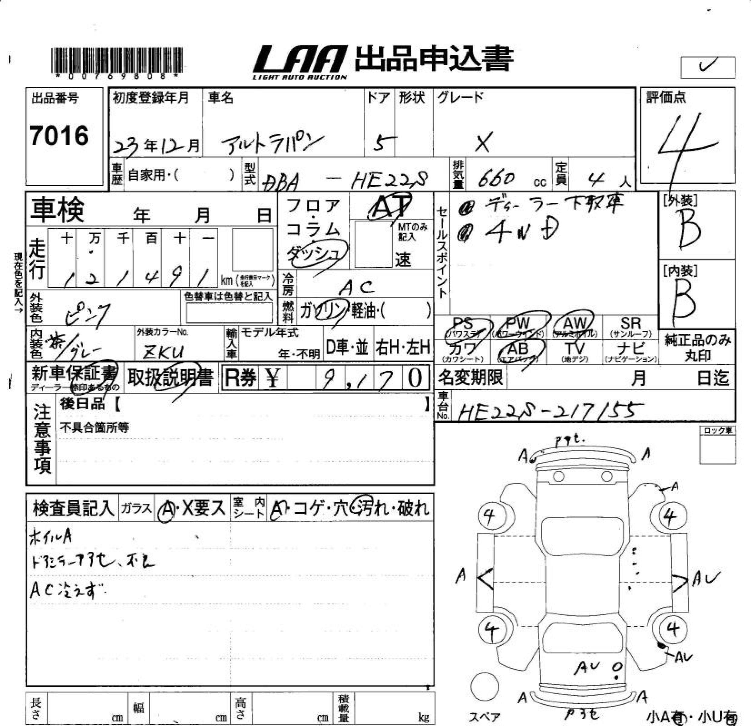 Все аукционы SUZUKI ALTO LAPIN