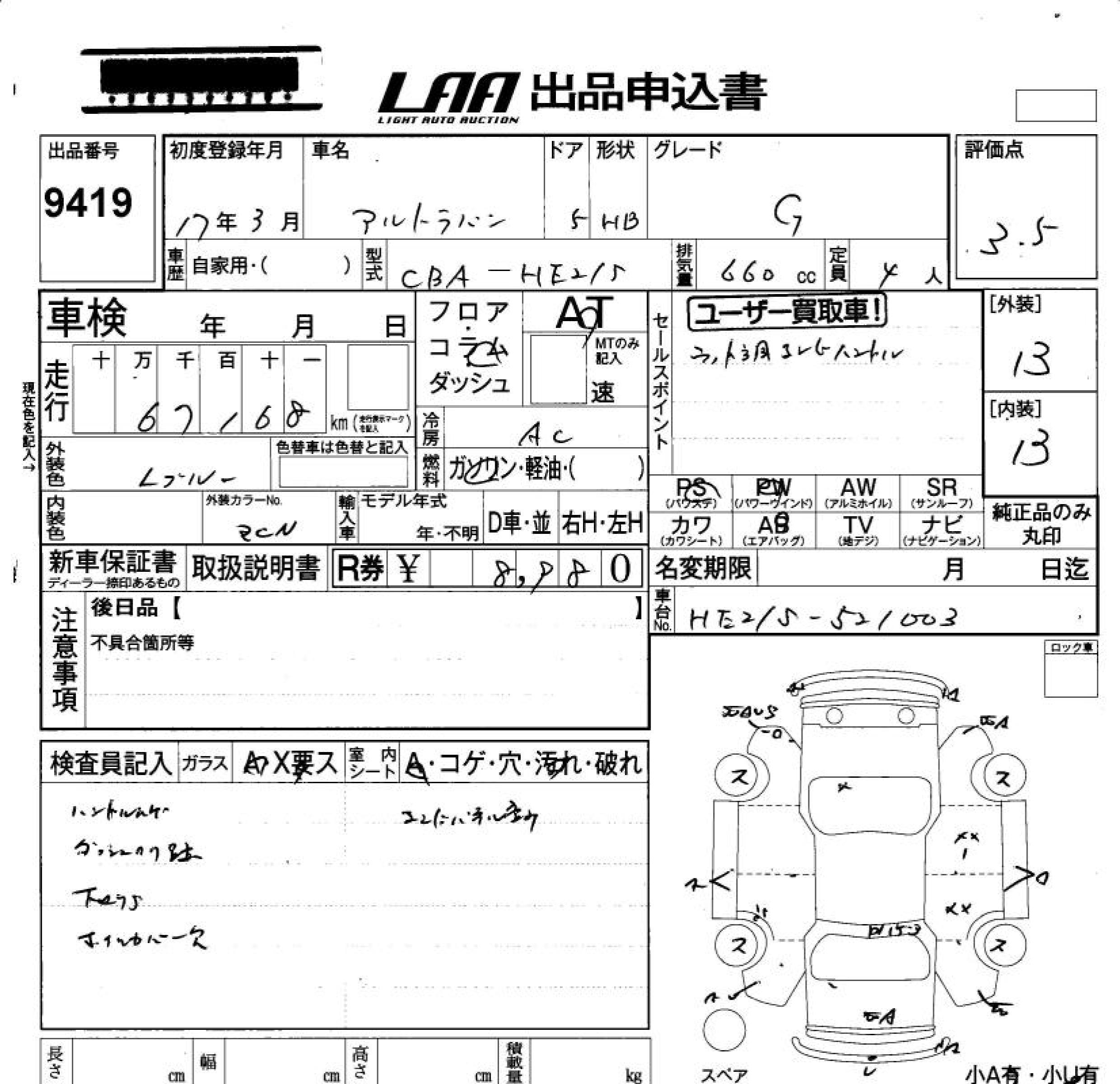 Все аукционы SUZUKI ALTO LAPIN