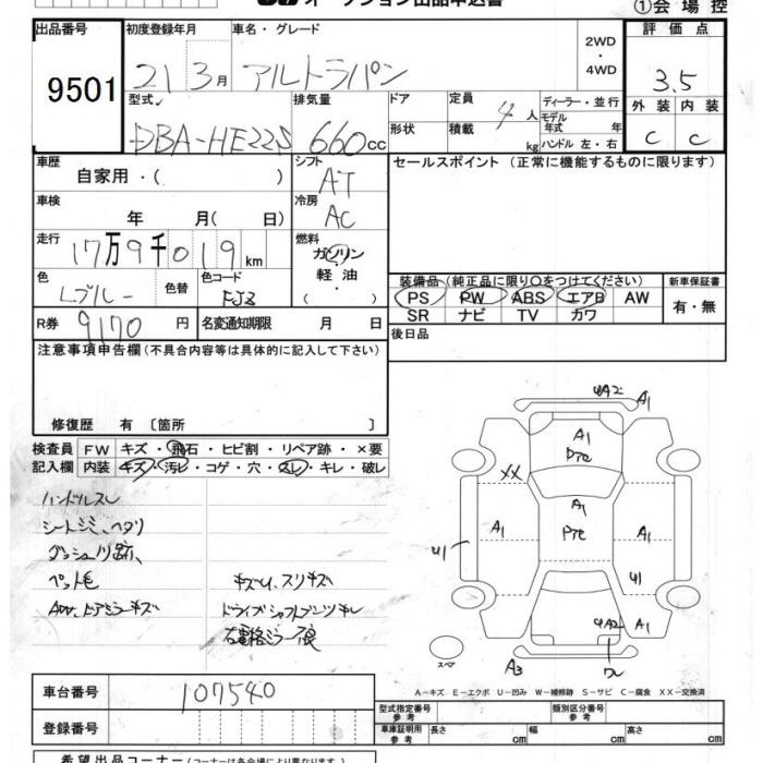 SUZUKI ALTO LAPIN - лот 9501