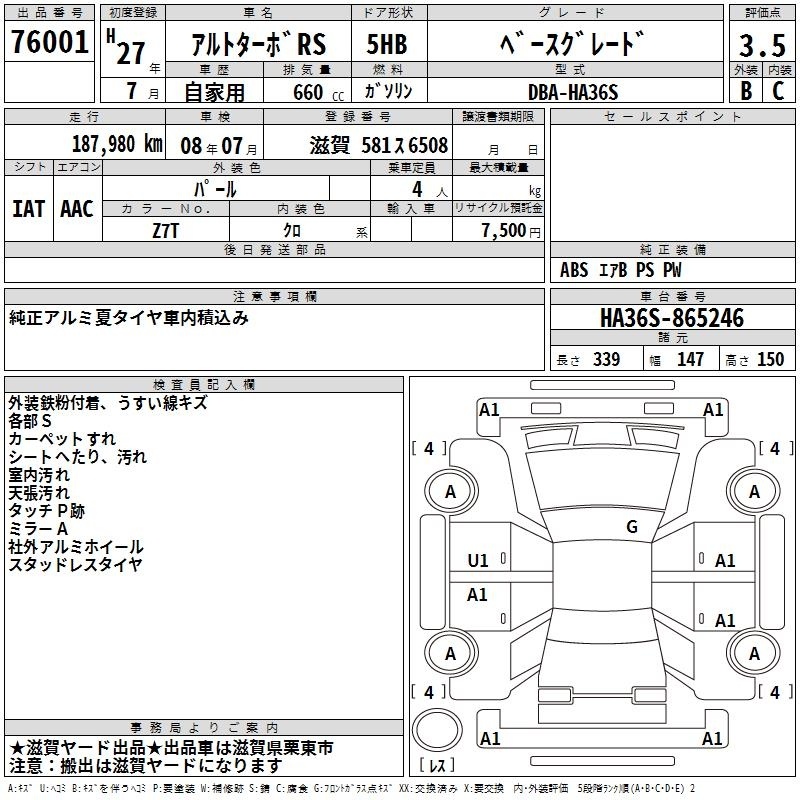 SUZUKI ALTO TURBO RS - лот 76001