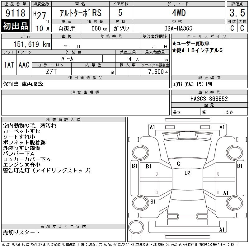 SUZUKI ALTO TURBO RS - лот 9118