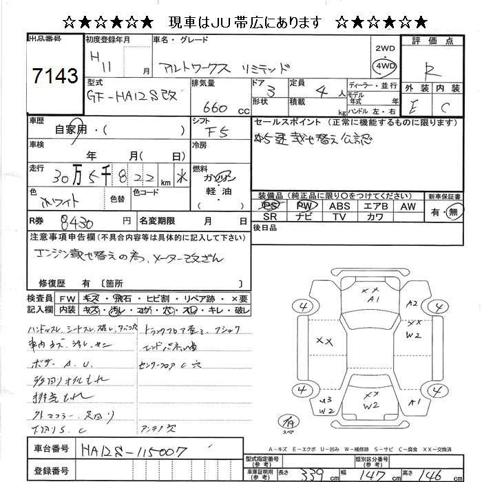 SUZUKI ALTO WORKS - лот 7143