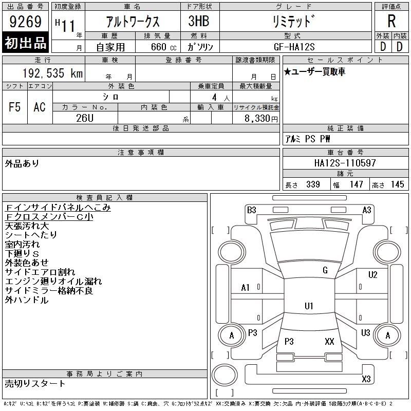 SUZUKI ALTO WORKS - лот 9269