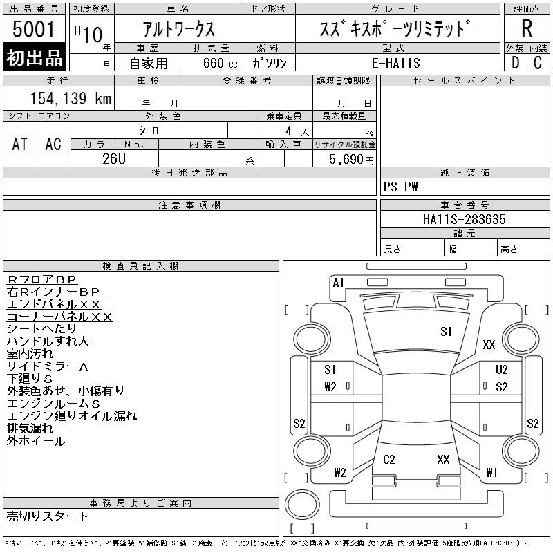 SUZUKI ALTO WORKS - лот 5001