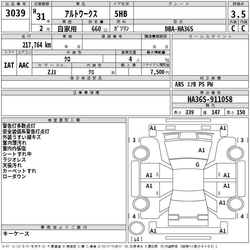 SUZUKI ALTO WORKS - лот 3039