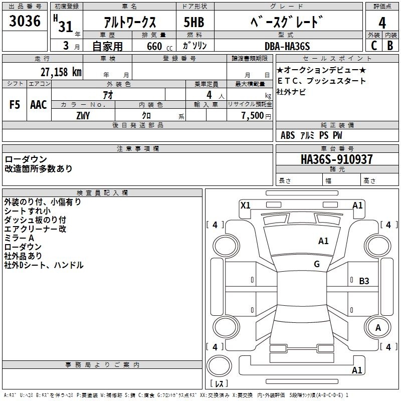SUZUKI ALTO WORKS - лот 3036
