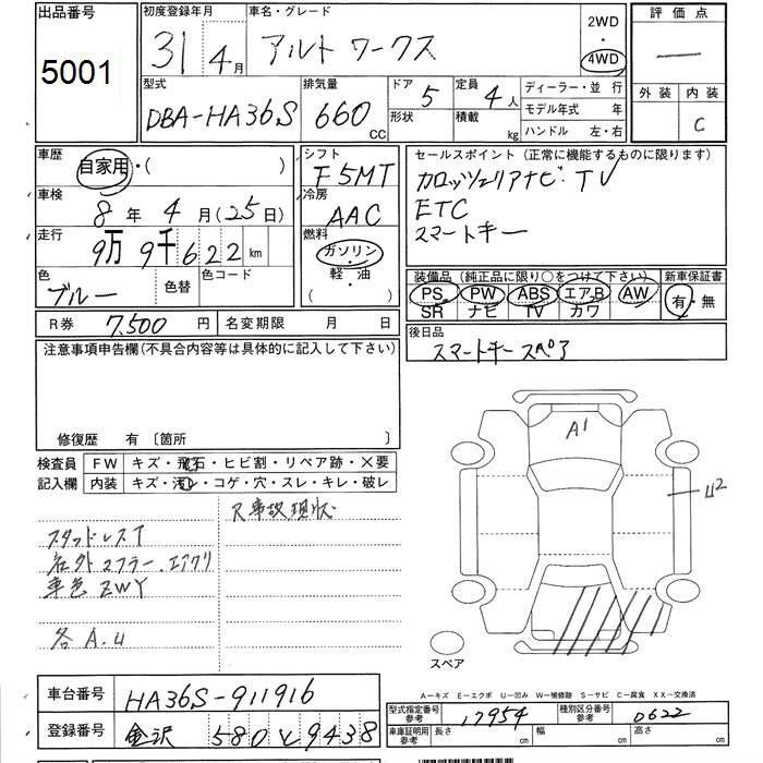 SUZUKI ALTO WORKS - лот 5001