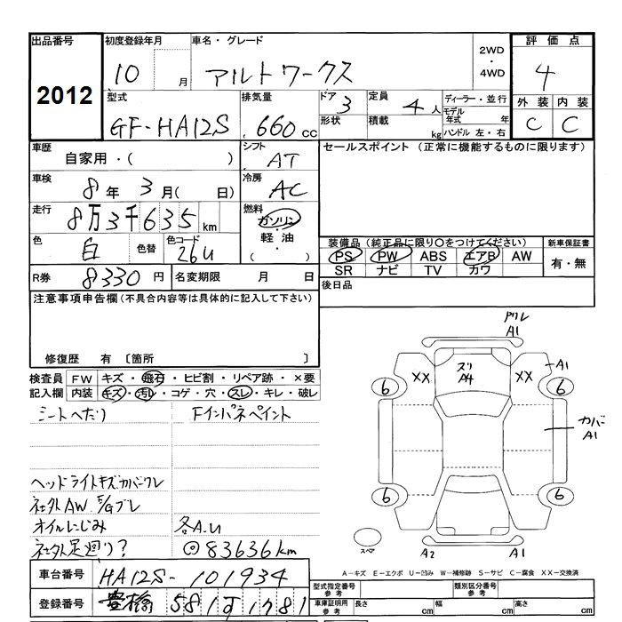 SUZUKI ALTO WORKS - лот 2012