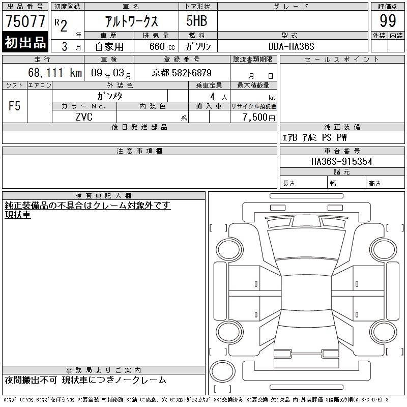 SUZUKI ALTO WORKS - лот 75077