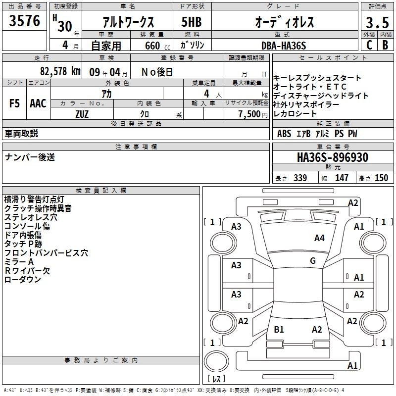 SUZUKI ALTO WORKS - лот 3576