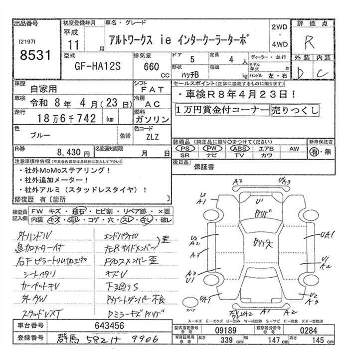 SUZUKI ALTO WORKS - лот 8531