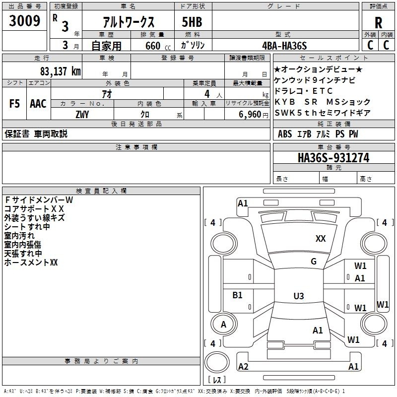 SUZUKI ALTO WORKS - лот 3009