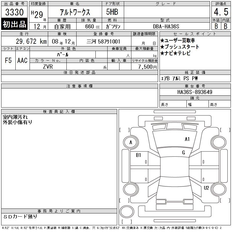 SUZUKI ALTO WORKS - лот 3330