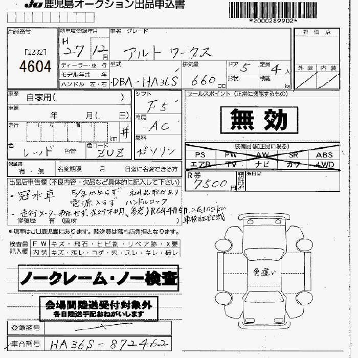 SUZUKI ALTO WORKS - лот 4604