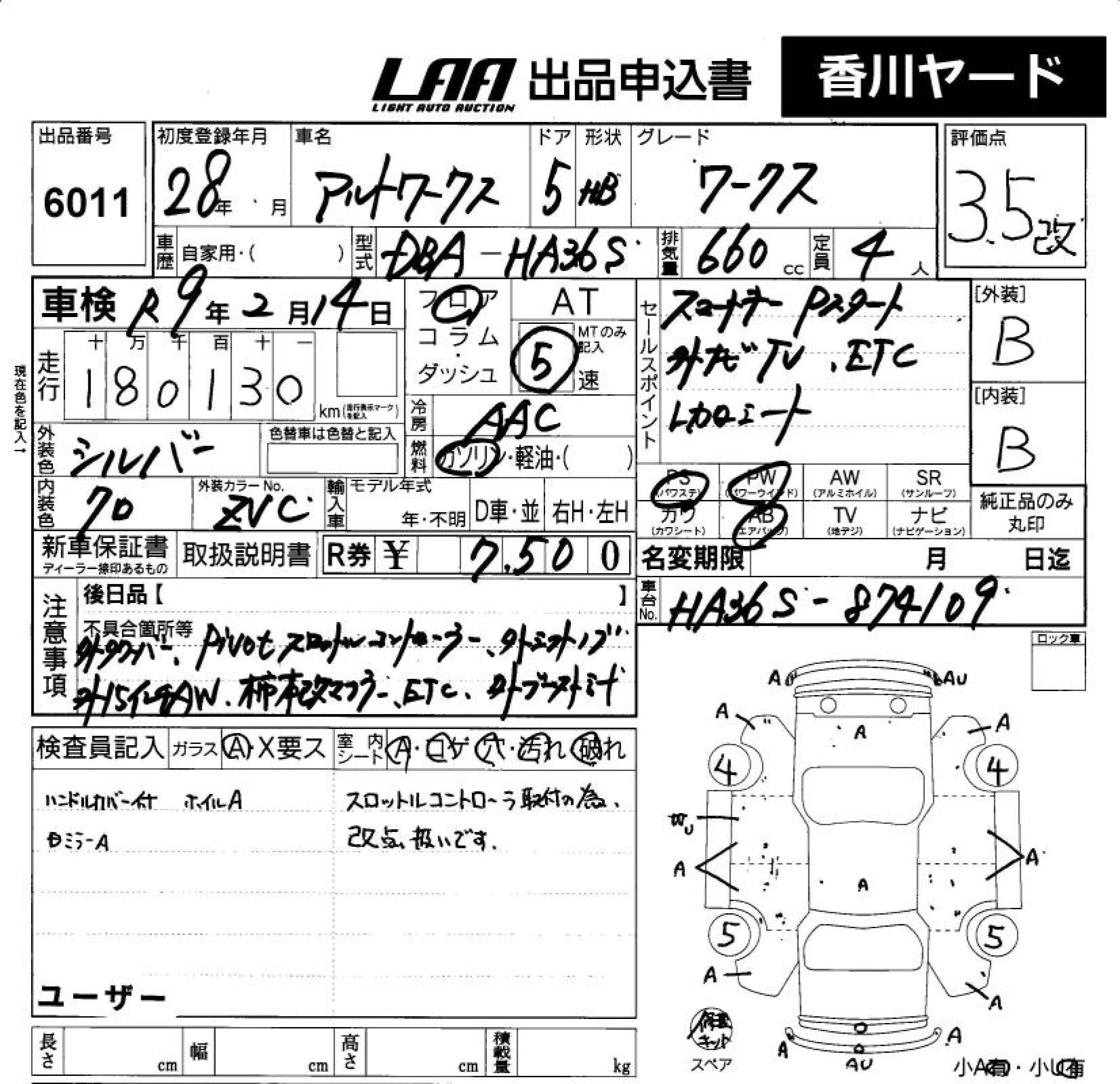 SUZUKI ALTO WORKS - лот 6011