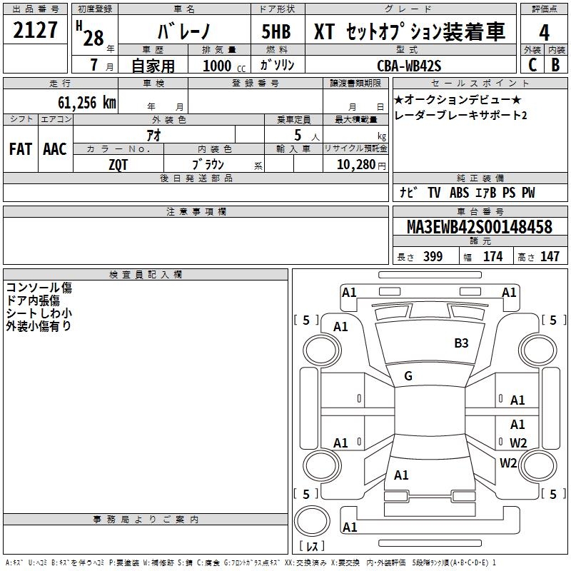 SUZUKI BALENO XT SET OPTION SOU TEA K CAR - лот 2127