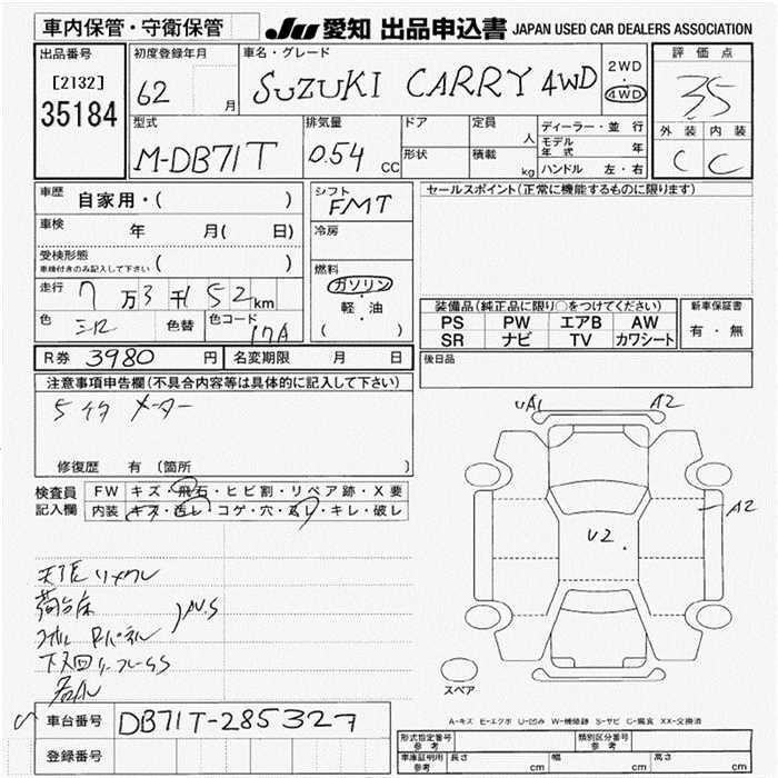 SUZUKI CARRY TRUCK 4WD - лот 35184