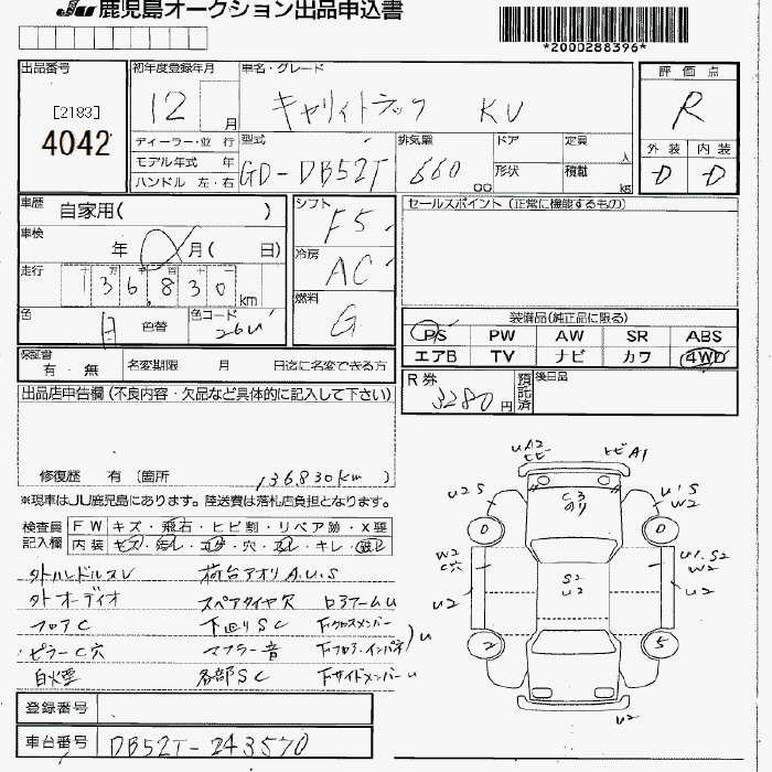 SUZUKI CARRY 4WD KU - лот 4042