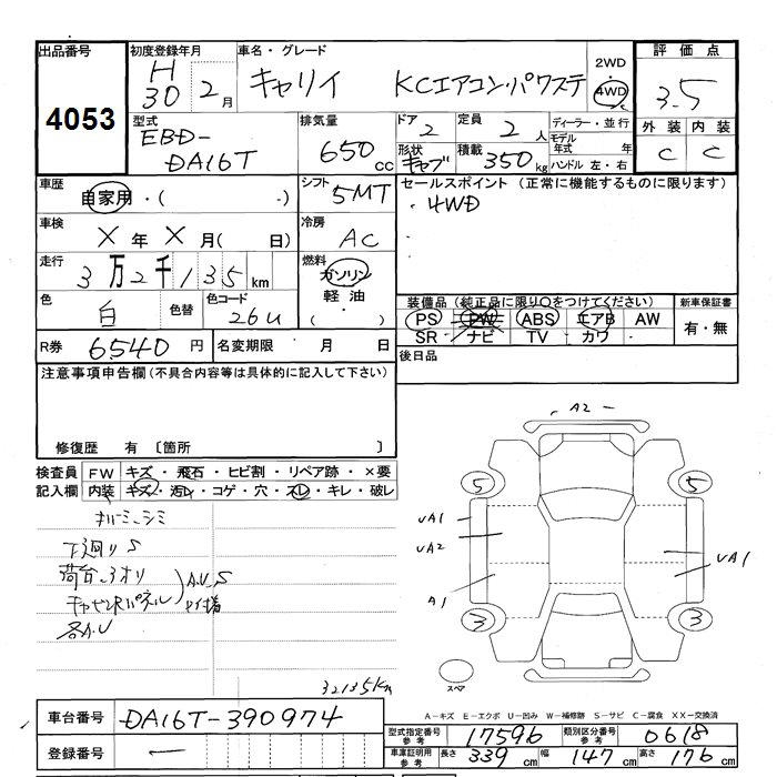 SUZUKI CARRY 4WD KC AIR CONDITIONER - POWER STEERING - лот 4053