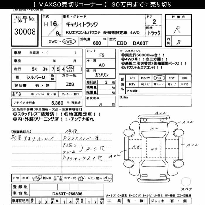 SUZUKI CARRY 4WD KU AIR CONDITIONER * POWER STEERING AICHI-KEN LIMITED CAR - лот 30008