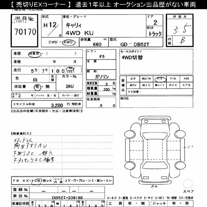SUZUKI CARRY 4WD KU - лот 70170