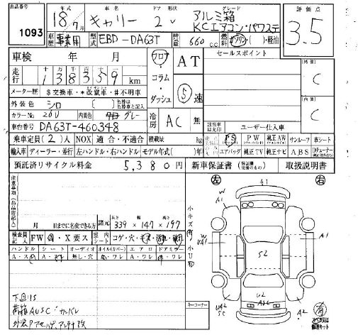SUZUKI CARRY KC AIR CONDITIONER POWER STEERING ARU - лот 1093