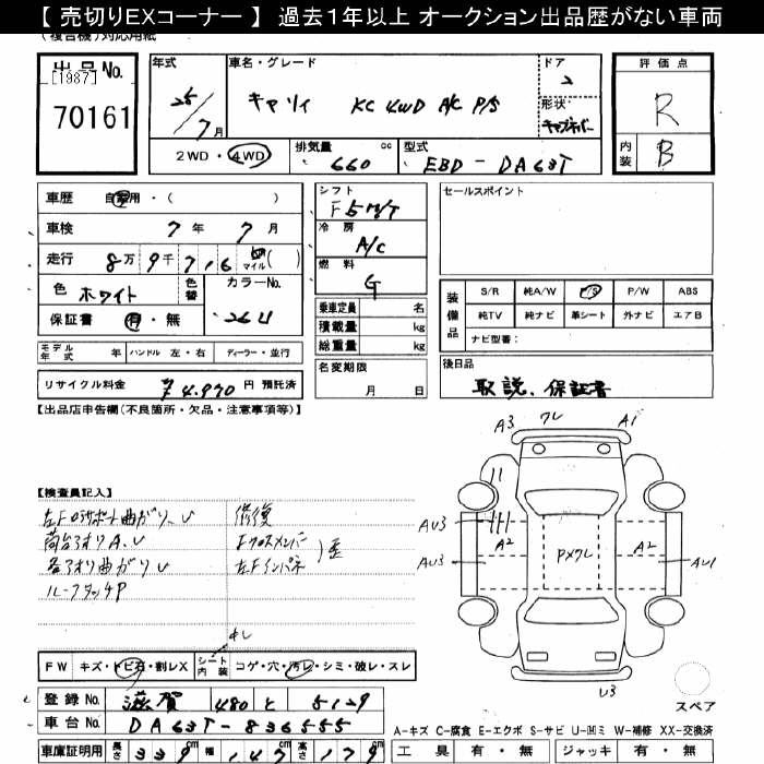 SUZUKI CARRY 4WD KC AIR CONDITIONER - POWER STEERING - лот 70161