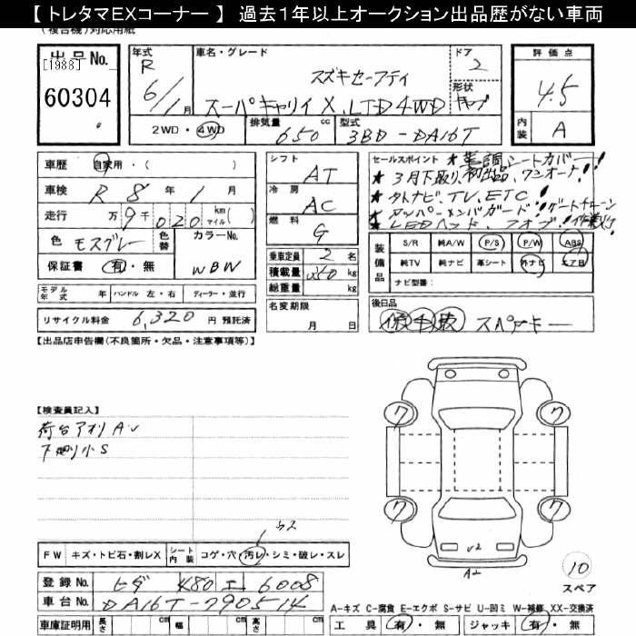 SUZUKI CARRY 4WD SUPER CARRY X LTD SUZUKI SAFETY - лот 60304
