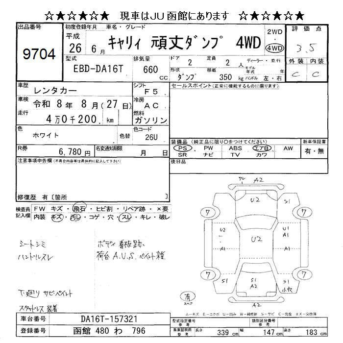 SUZUKI CARRY 4WD GUN JOU DUMP - лот 9704