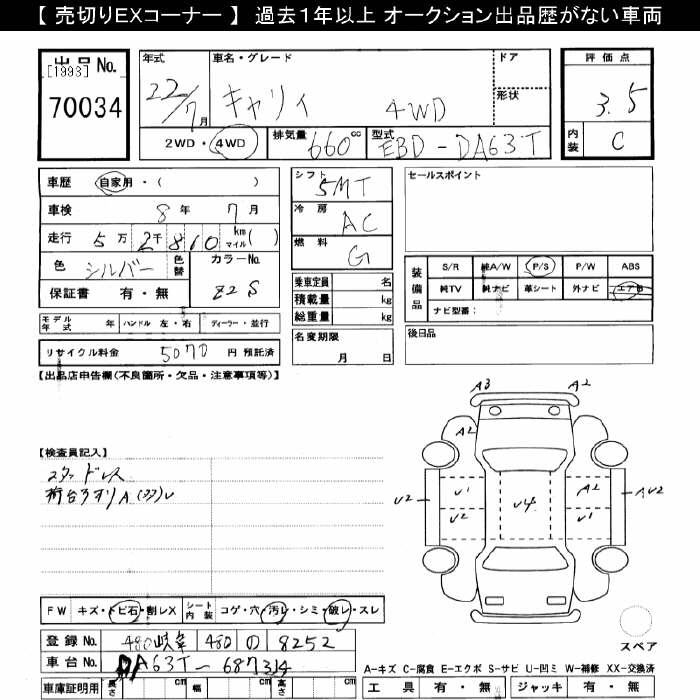 SUZUKI CARRY 4WD - лот 70034
