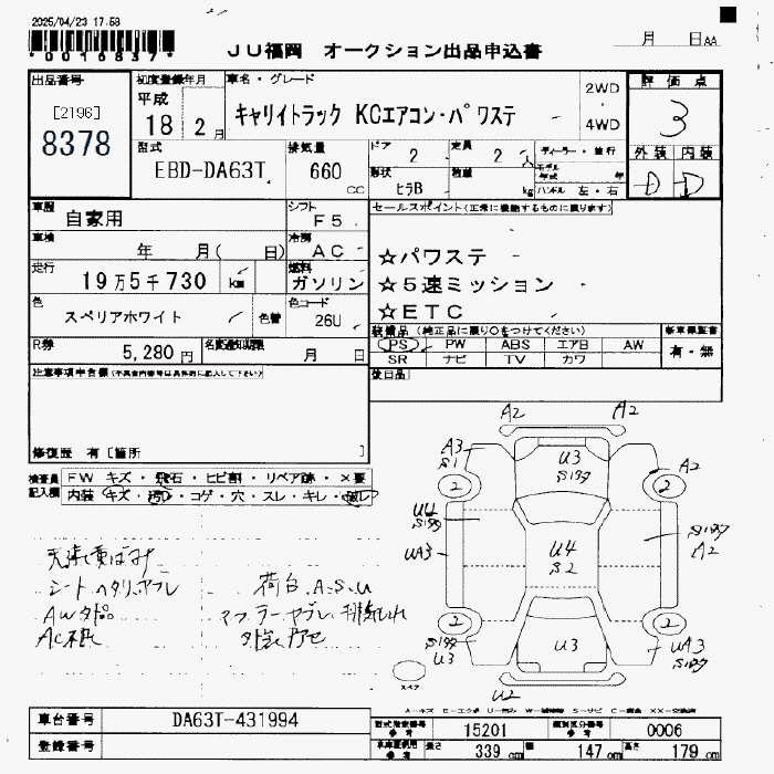 SUZUKI CARRY KC AIR CONDITIONER - POWER STEERING - лот 8378