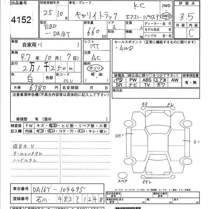 SUZUKI CARRY 4WD KC AIR CONDITIONER - POWER STEERING - лот 4152