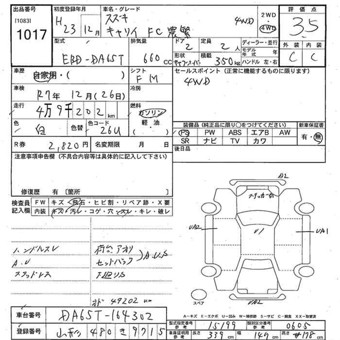 SUZUKI CARRY 4WD FC NOUHAN - лот 1017