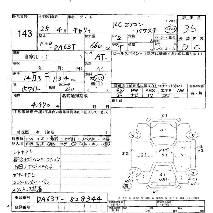 SUZUKI CARRY 4WD KC AIR CONDITIONER - POWER STEERING - лот 143
