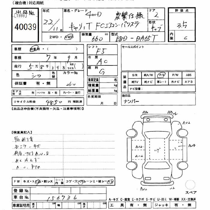 SUZUKI CARRY 4WD FC AIR CONDITIONER POWER STEERING NOUHAN USE - лот 40039