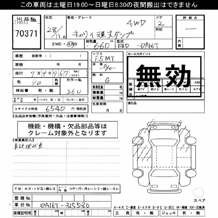 SUZUKI CARRY 4WD gun ... самосвал - лот 70371