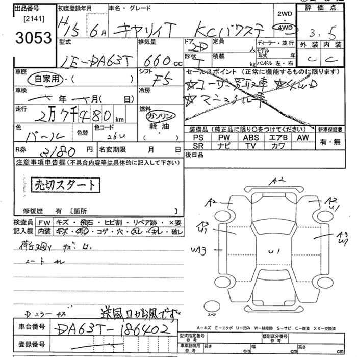 SUZUKI CARRY 4WD KC POWER STEERING - лот 3053