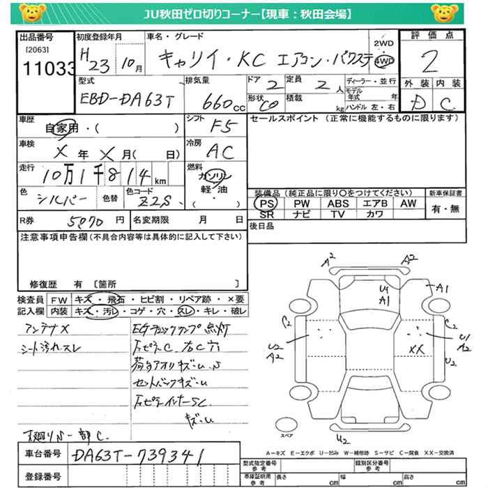 SUZUKI CARRY 4WD KC AIR CONDITIONER - POWER STEERING - лот 11033
