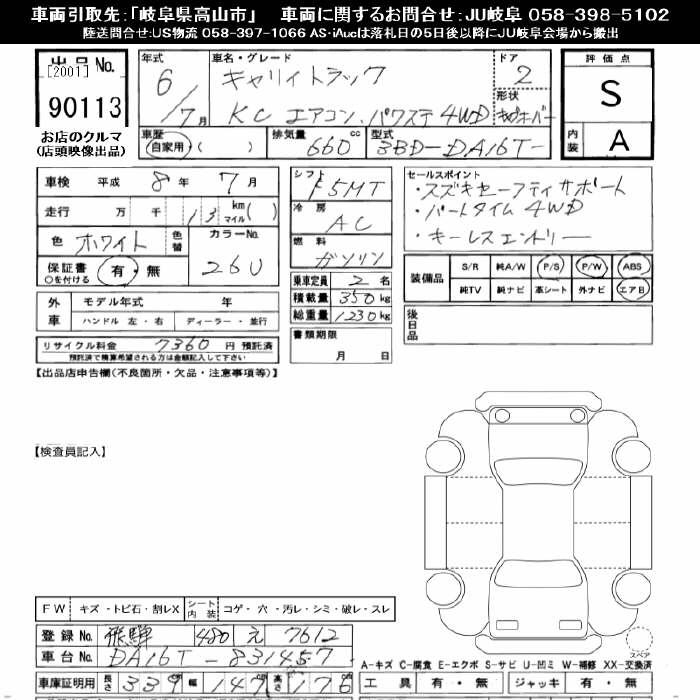SUZUKI CARRY 4WD KC AIR CONDITIONER POWER STEERING - лот 90113