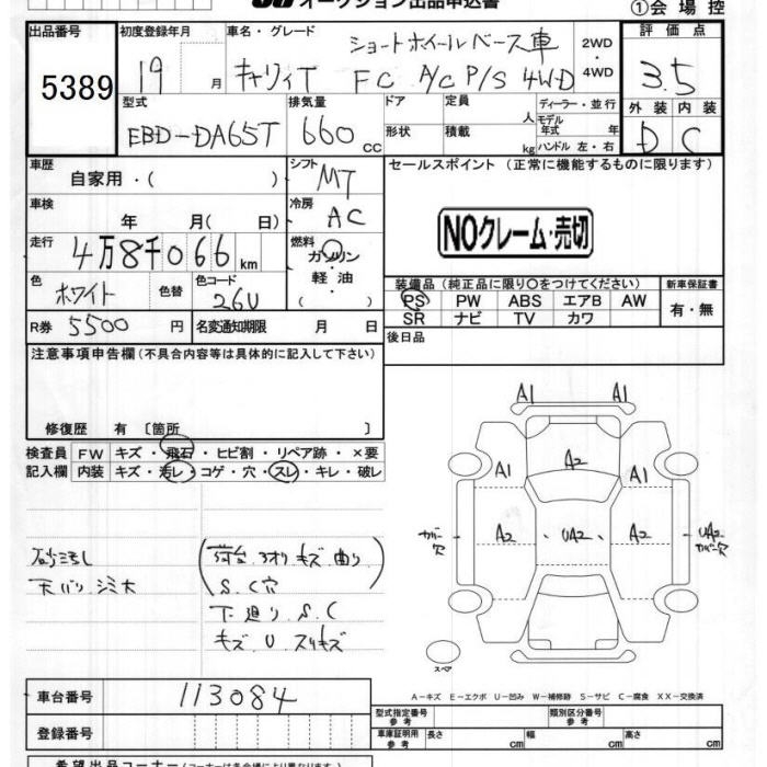 SUZUKI CARRY 4WD FC AIR CONDITIONER - POWER STEERING SHORT WHEEL BASE CAR - лот 5389
