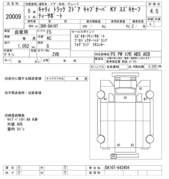SUZUKI CARRY KXZS YELLOW SAFETY SUPPORT - лот 20009